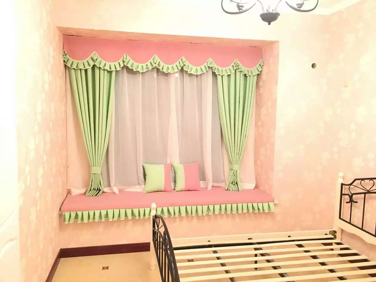 谁说的”红配绿,晒狗屁“,深圳宜家窗帘为华侨城碧海云天客户设计的这款嫩绿色拼粉红色雪尼尔布,使房间瞬间充满活泼的气息,打开房门小清新气息扑面而来。